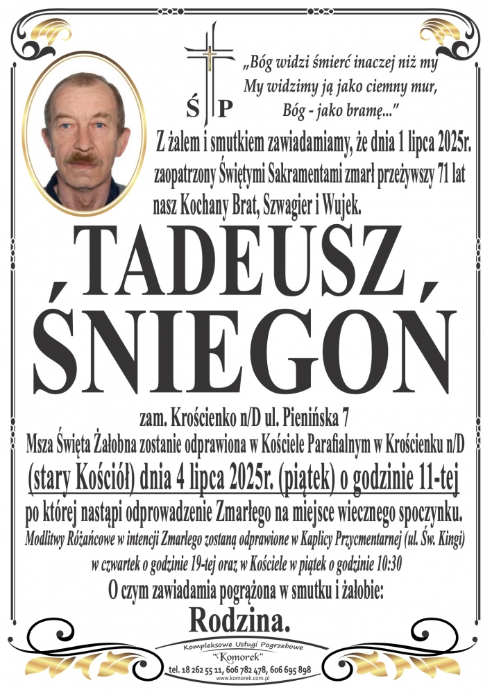 Tadeusz Śniegoń - Nekrologi - podhale24.pl