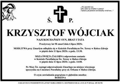 Podhale24.pl zastrzega sobie prawo do nie publikowania wspomnień, w szczególności tych nie związanych z profilem działu nekrologi, zawierających wulgaryzmy, wzywających do zachowań niezgodnych z prawem, obrażających osoby publiczne i prywatne, obrażających inne narodowości, rasy, religie itd, oraz te, bez możliwości telefonicznej lub mailowej weryfikacji ich autora.