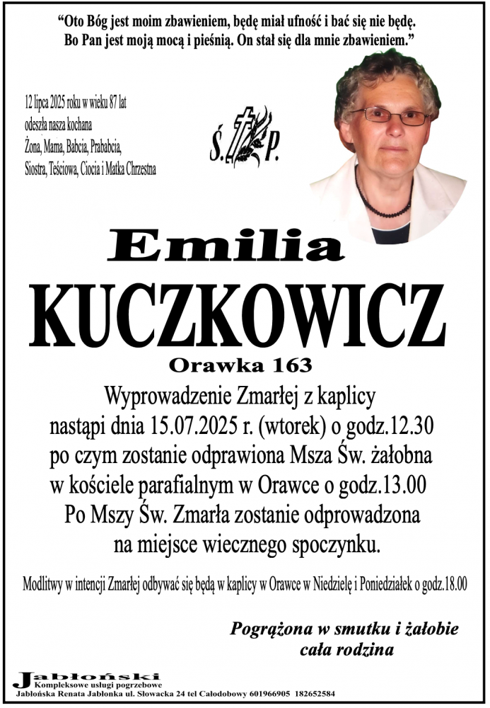 Emilia Kuczkowicz - Nekrologi - podhale24.pl