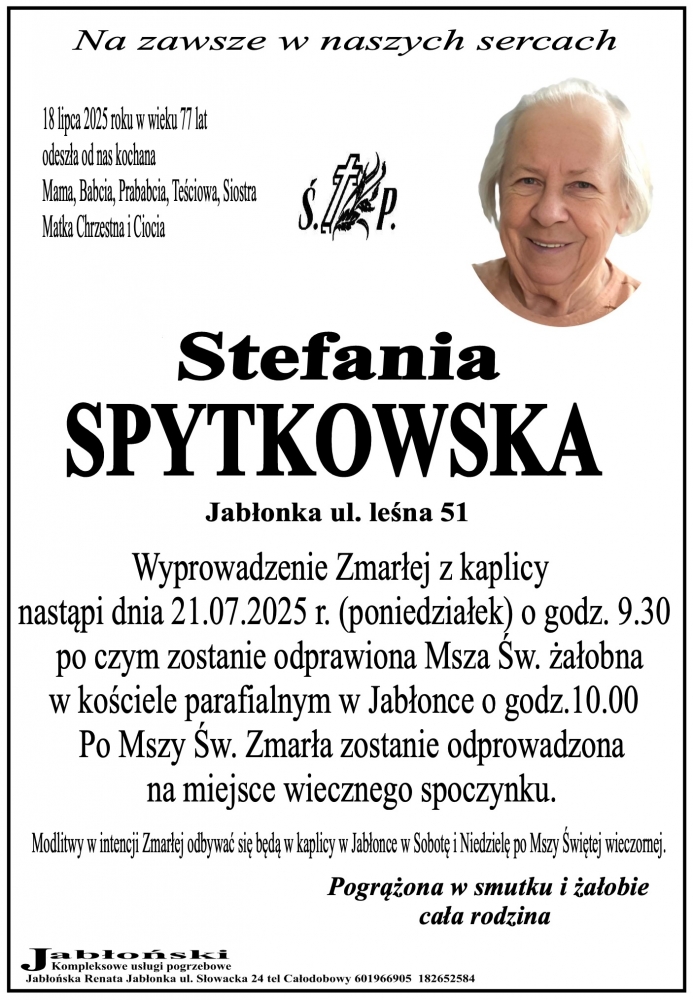 Stefania Spytkowska - Nekrologi - podhale24.pl
