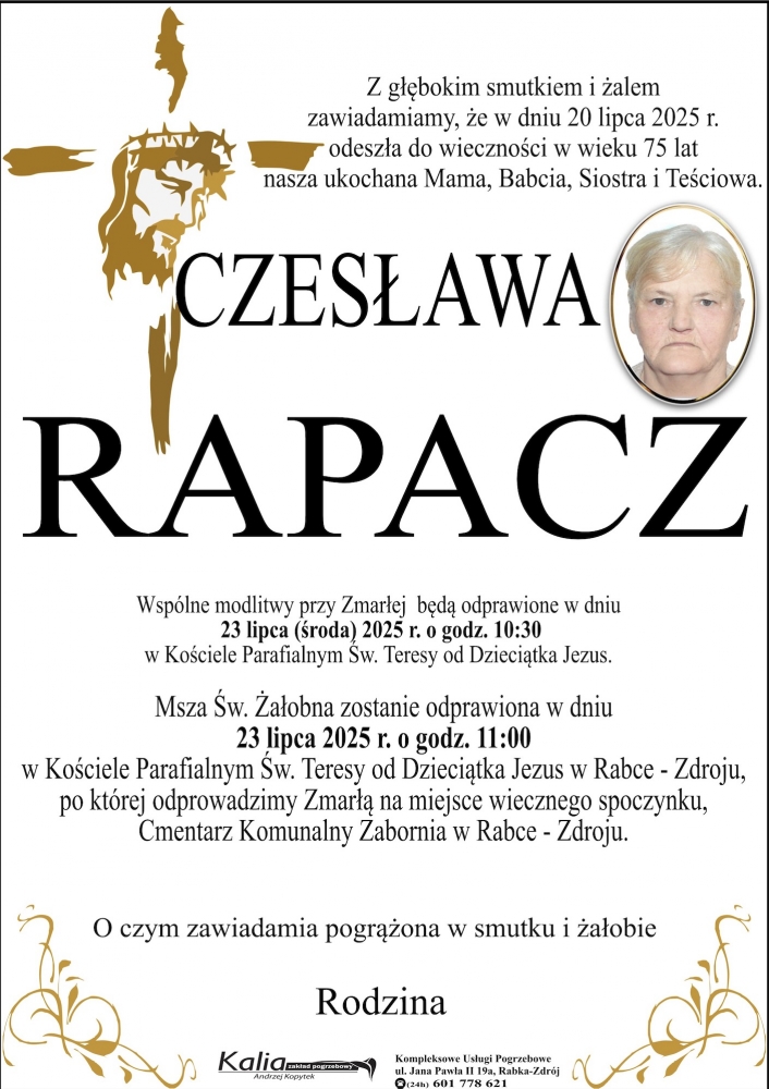 Czesława Rapacz - Nekrologi - podhale24.pl