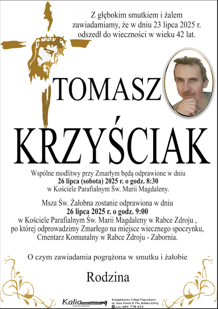 Tomasz Krzyściak - Nekrologi - podhale24.pl