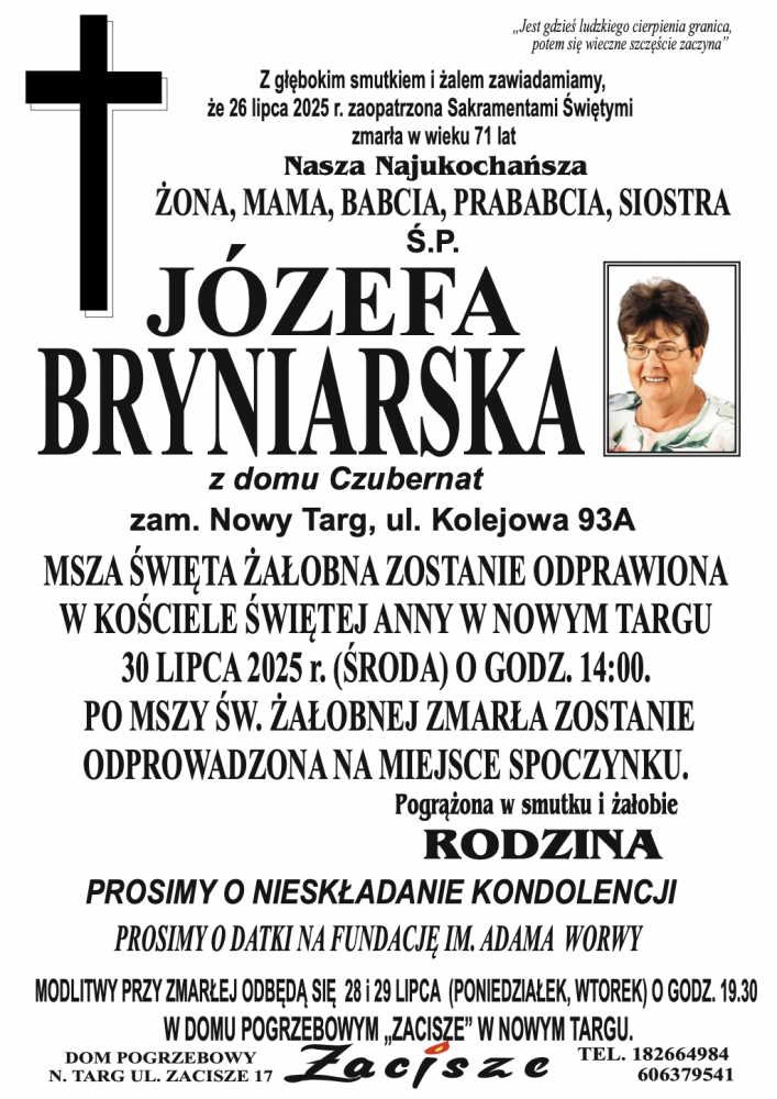 Józefa Bryniarska - Nekrologi - podhale24.pl