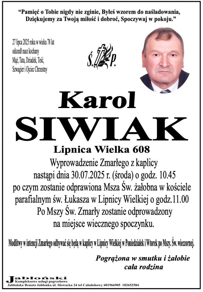 Karol Siwiak - Nekrologi - podhale24.pl