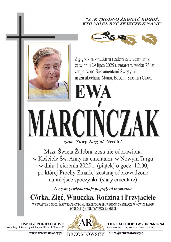 Ewa Marcińczak - Nekrologi - podhale24.pl