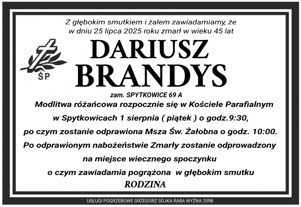 Dariusz Brandys - Nekrologi - podhale24.pl