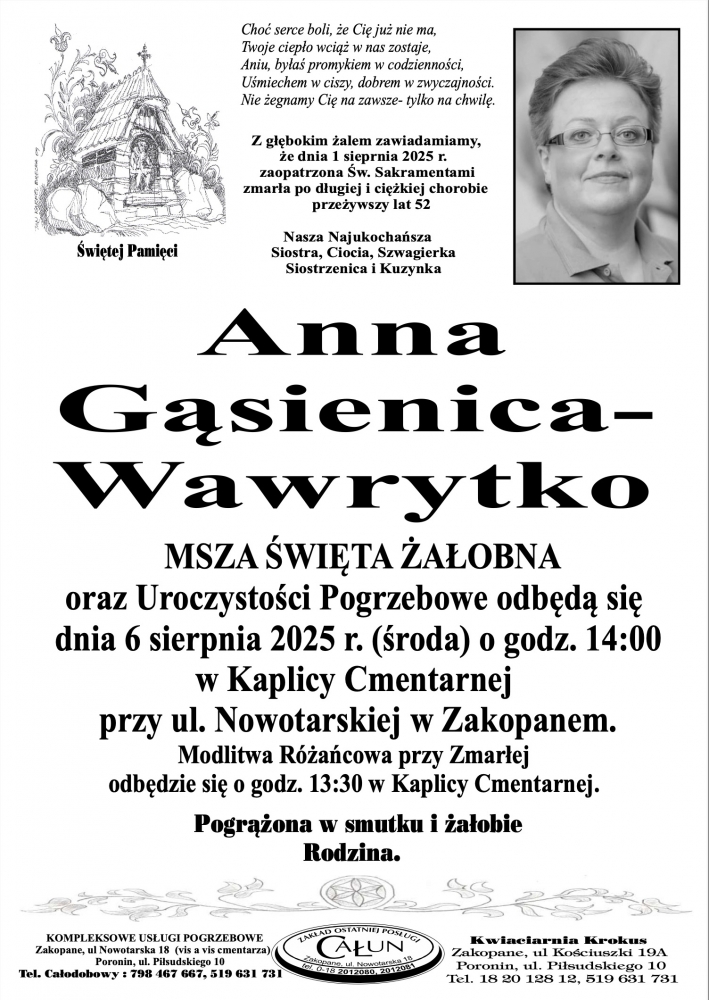 Anna Gąsienica-Wawrytko - Nekrologi - podhale24.pl