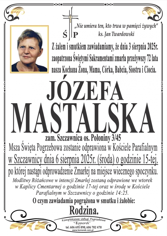 Józefa Mastalska - Nekrologi - podhale24.pl