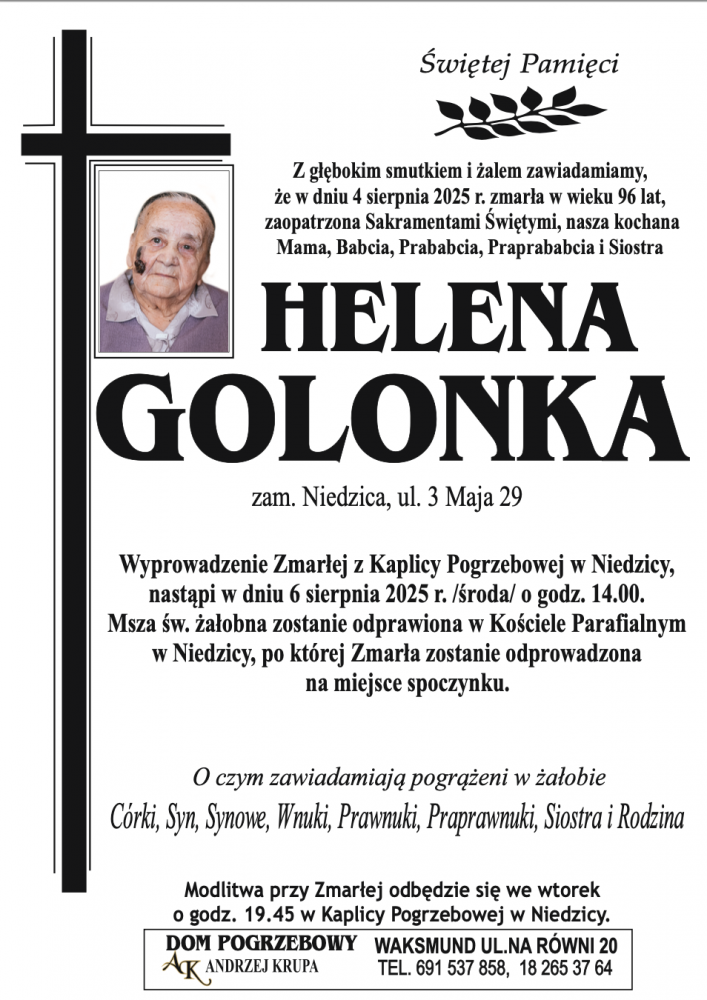 Podhale24.pl zastrzega sobie prawo do nie publikowania wspomnień, w szczególności tych nie związanych z profilem działu nekrologi, zawierających wulgaryzmy, wzywających do zachowań niezgodnych z prawem, obrażających osoby publiczne i prywatne, obrażających inne narodowości, rasy, religie itd, oraz te, bez możliwości telefonicznej lub mailowej weryfikacji ich autora.