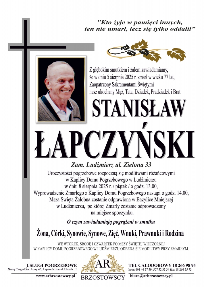 Stanisław Łapczyński - Nekrologi - podhale24.pl