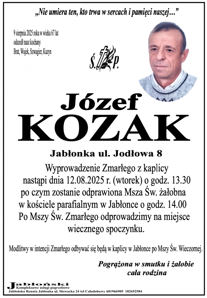 Podhale24.pl zastrzega sobie prawo do nie publikowania wspomnień, w szczególności tych nie związanych z profilem działu nekrologi, zawierających wulgaryzmy, wzywających do zachowań niezgodnych z prawem, obrażających osoby publiczne i prywatne, obrażających inne narodowości, rasy, religie itd, oraz te, bez możliwości telefonicznej lub mailowej weryfikacji ich autora.