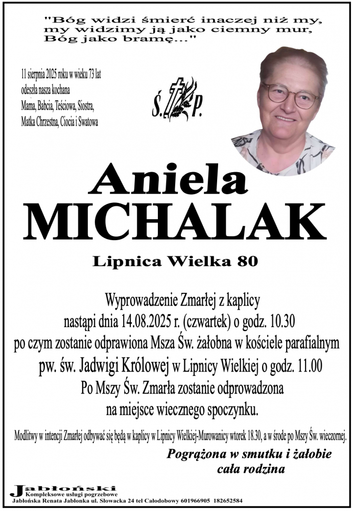 Podhale24.pl zastrzega sobie prawo do nie publikowania wspomnień, w szczególności tych nie związanych z profilem działu nekrologi, zawierających wulgaryzmy, wzywających do zachowań niezgodnych z prawem, obrażających osoby publiczne i prywatne, obrażających inne narodowości, rasy, religie itd, oraz te, bez możliwości telefonicznej lub mailowej weryfikacji ich autora.