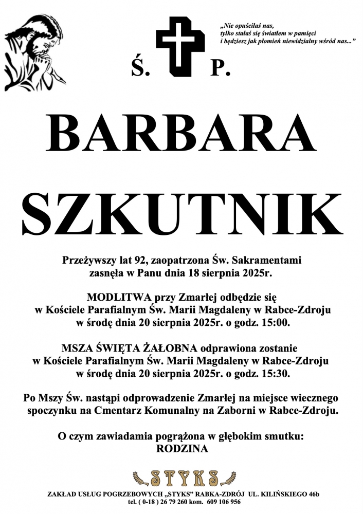 Barbara Szkutnik - Nekrologi - podhale24.pl