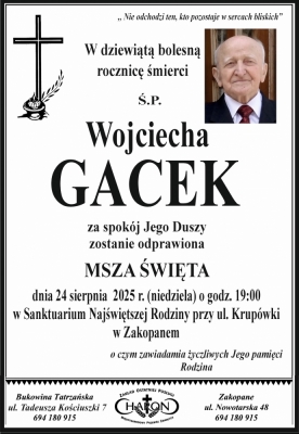 Podhale24.pl zastrzega sobie prawo do nie publikowania wspomnień, w szczególności tych nie związanych z profilem działu nekrologi, zawierających wulgaryzmy, wzywających do zachowań niezgodnych z prawem, obrażających osoby publiczne i prywatne, obrażających inne narodowości, rasy, religie itd, oraz te, bez możliwości telefonicznej lub mailowej weryfikacji ich autora.