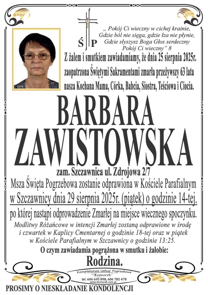 Barbara Zawistowska - Nekrologi - podhale24.pl