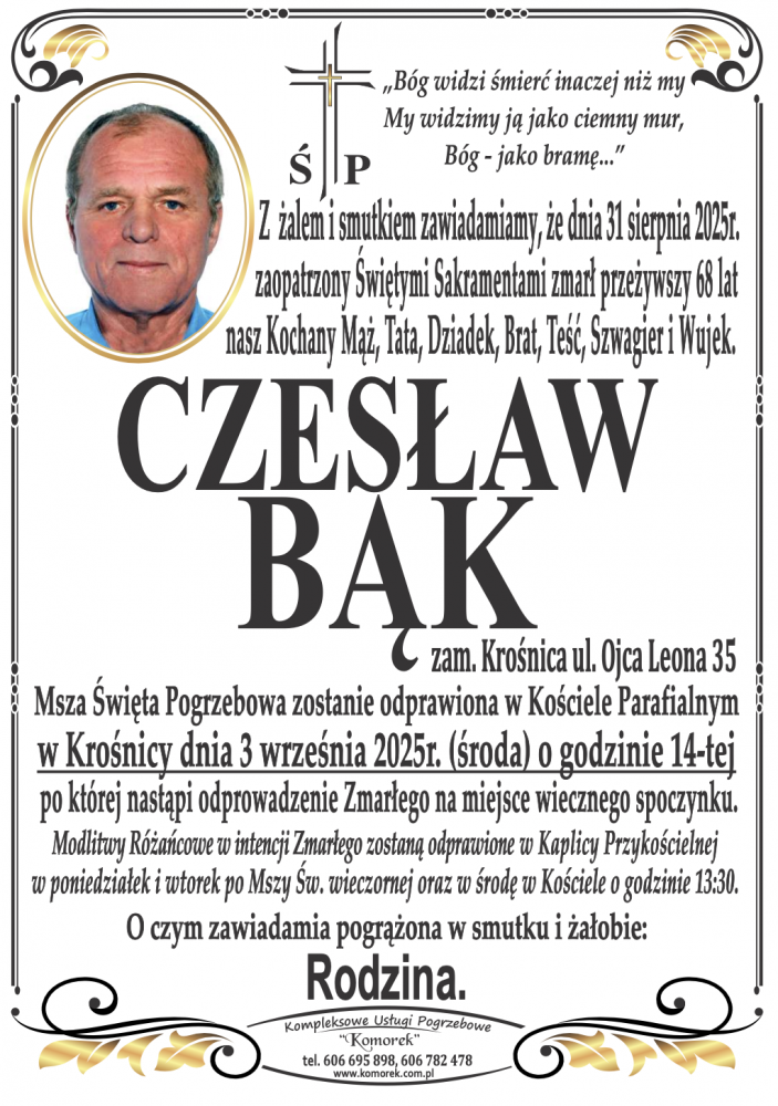 Podhale24.pl zastrzega sobie prawo do nie publikowania wspomnień, w szczególności tych nie związanych z profilem działu nekrologi, zawierających wulgaryzmy, wzywających do zachowań niezgodnych z prawem, obrażających osoby publiczne i prywatne, obrażających inne narodowości, rasy, religie itd, oraz te, bez możliwości telefonicznej lub mailowej weryfikacji ich autora.