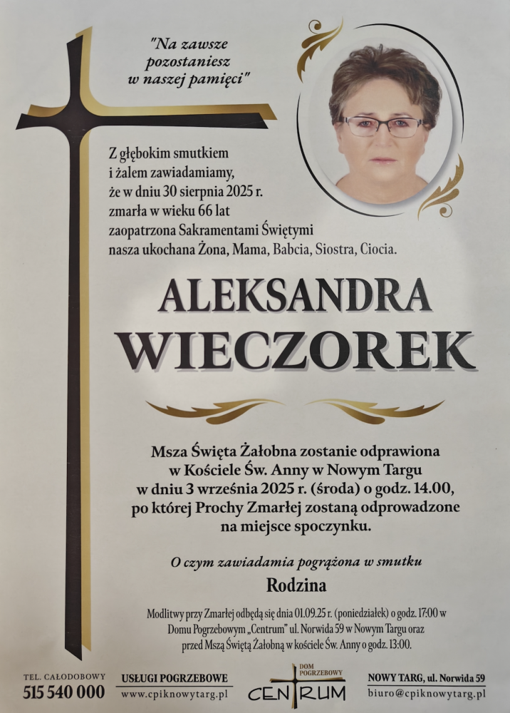 Aleksandra Wieczorek - Nekrologi - podhale24.pl