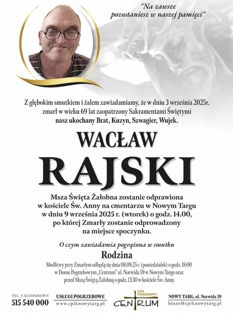 Wacław Rajski - Nekrologi - podhale24.pl