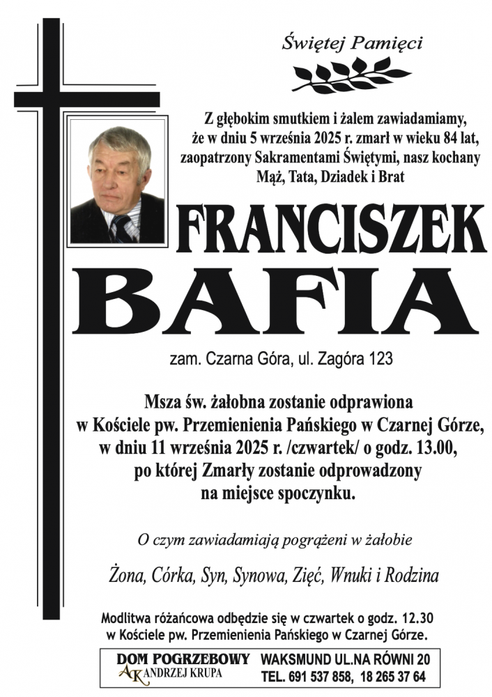Franciszek Bafia - Nekrologi - podhale24.pl