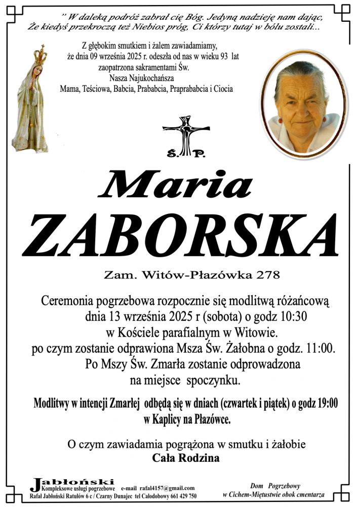 Podhale24.pl zastrzega sobie prawo do nie publikowania wspomnień, w szczególności tych nie związanych z profilem działu nekrologi, zawierających wulgaryzmy, wzywających do zachowań niezgodnych z prawem, obrażających osoby publiczne i prywatne, obrażających inne narodowości, rasy, religie itd, oraz te, bez możliwości telefonicznej lub mailowej weryfikacji ich autora.
