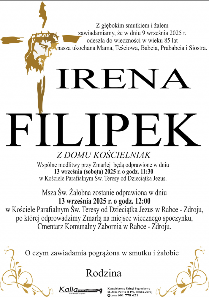 Podhale24.pl zastrzega sobie prawo do nie publikowania wspomnień, w szczególności tych nie związanych z profilem działu nekrologi, zawierających wulgaryzmy, wzywających do zachowań niezgodnych z prawem, obrażających osoby publiczne i prywatne, obrażających inne narodowości, rasy, religie itd, oraz te, bez możliwości telefonicznej lub mailowej weryfikacji ich autora.