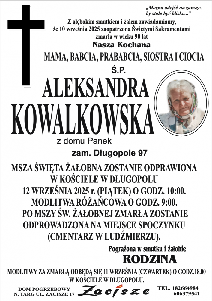 Alesandra Kowalkowska - Nekrologi - podhale24.pl