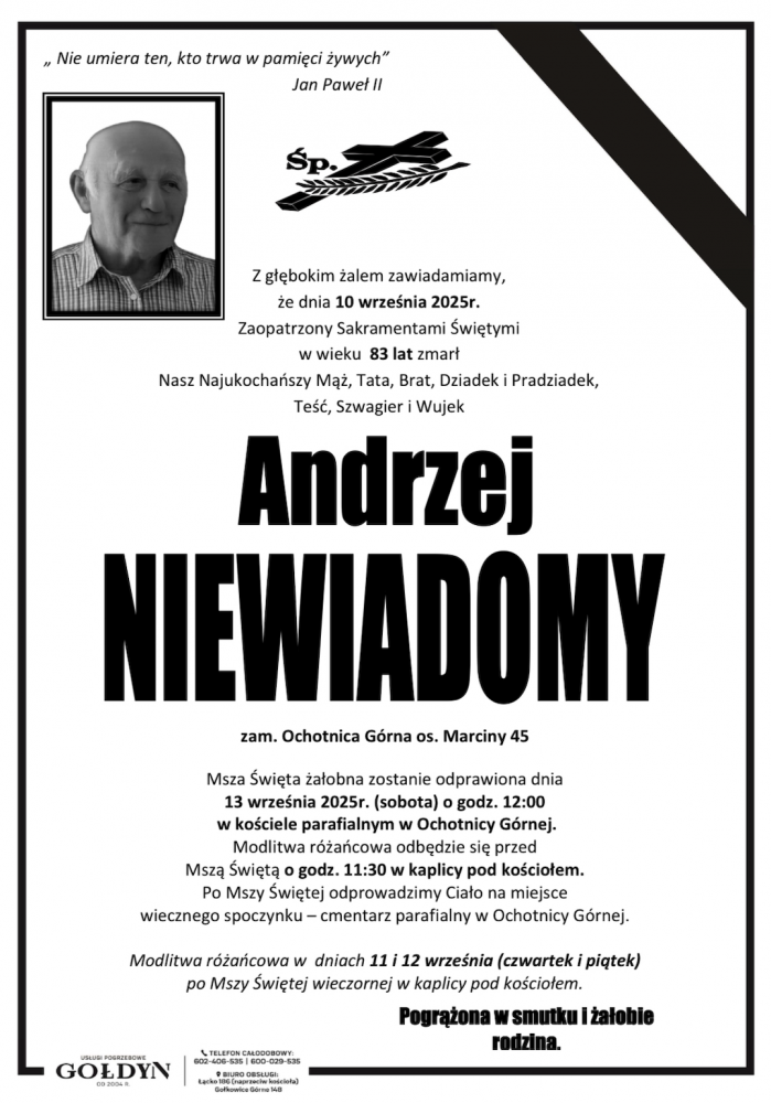 Andrzej Niewiadomy - Nekrologi - podhale24.pl