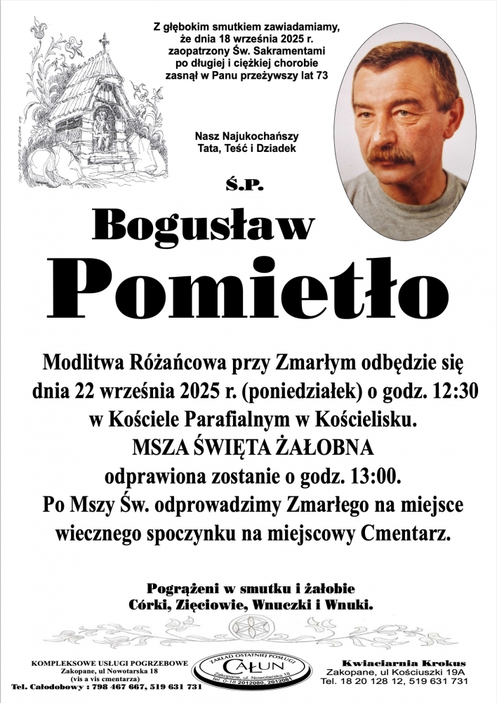 Bogusław Pomietło - Nekrologi - podhale24.pl