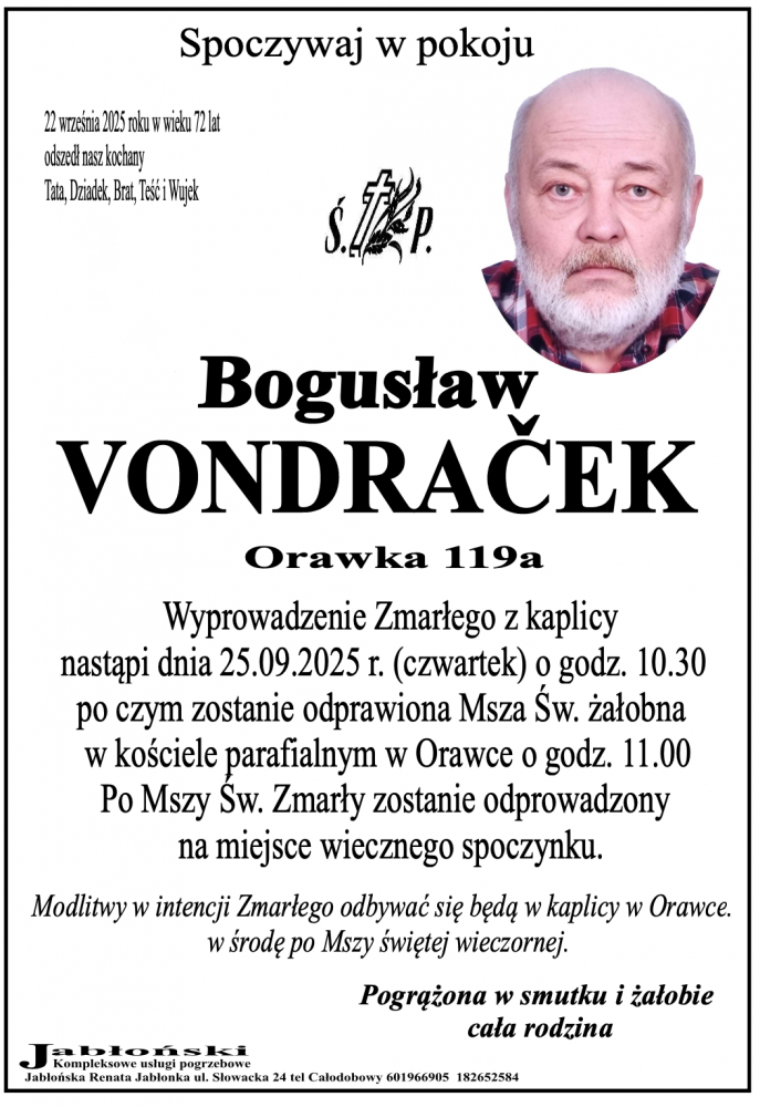 Bogusłąw Vondracek - Nekrologi - podhale24.pl