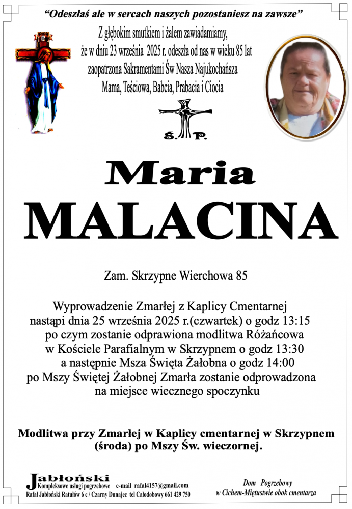Podhale24.pl zastrzega sobie prawo do nie publikowania wspomnień, w szczególności tych nie związanych z profilem działu nekrologi, zawierających wulgaryzmy, wzywających do zachowań niezgodnych z prawem, obrażających osoby publiczne i prywatne, obrażających inne narodowości, rasy, religie itd, oraz te, bez możliwości telefonicznej lub mailowej weryfikacji ich autora.
