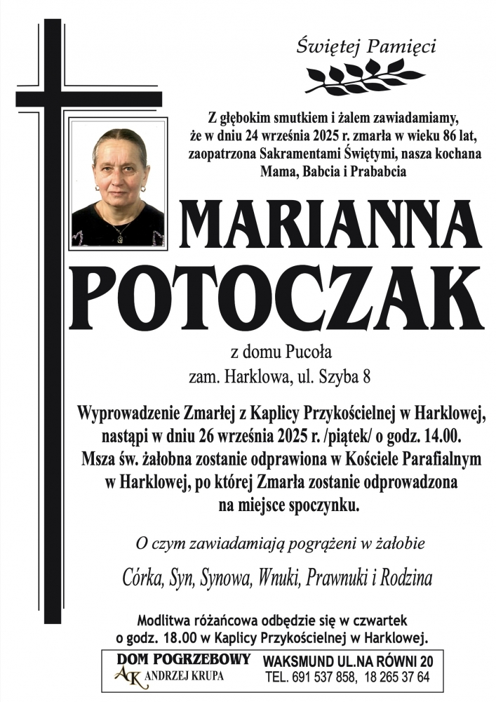 Marianna Potoczak - Nekrologi - podhale24.pl