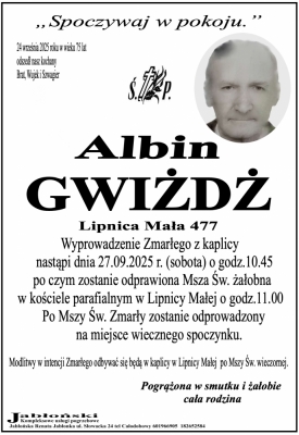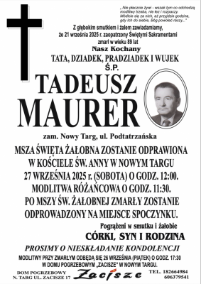 Podhale24.pl zastrzega sobie prawo do nie publikowania wspomnień, w szczególności tych nie związanych z profilem działu nekrologi, zawierających wulgaryzmy, wzywających do zachowań niezgodnych z prawem, obrażających osoby publiczne i prywatne, obrażających inne narodowości, rasy, religie itd, oraz te, bez możliwości telefonicznej lub mailowej weryfikacji ich autora.
