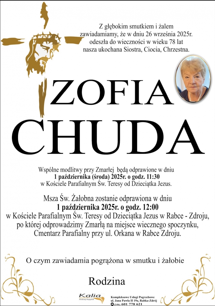 Podhale24.pl zastrzega sobie prawo do nie publikowania wspomnień, w szczególności tych nie związanych z profilem działu nekrologi, zawierających wulgaryzmy, wzywających do zachowań niezgodnych z prawem, obrażających osoby publiczne i prywatne, obrażających inne narodowości, rasy, religie itd, oraz te, bez możliwości telefonicznej lub mailowej weryfikacji ich autora.