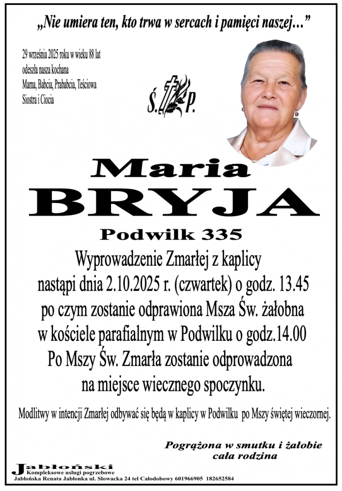 Podhale24.pl zastrzega sobie prawo do nie publikowania wspomnień, w szczególności tych nie związanych z profilem działu nekrologi, zawierających wulgaryzmy, wzywających do zachowań niezgodnych z prawem, obrażających osoby publiczne i prywatne, obrażających inne narodowości, rasy, religie itd, oraz te, bez możliwości telefonicznej lub mailowej weryfikacji ich autora.