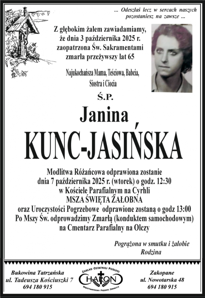 Janina Kunc-Jasińska - Nekrologi - podhale24.pl
