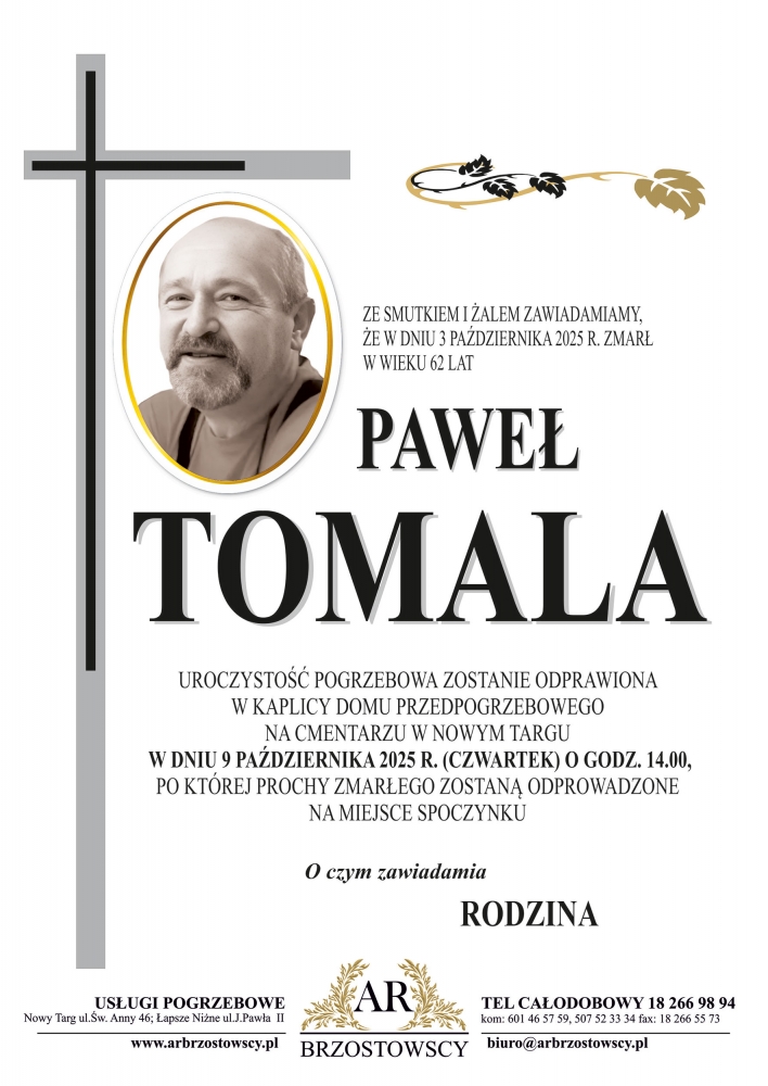 Podhale24.pl zastrzega sobie prawo do nie publikowania wspomnień, w szczególności tych nie związanych z profilem działu nekrologi, zawierających wulgaryzmy, wzywających do zachowań niezgodnych z prawem, obrażających osoby publiczne i prywatne, obrażających inne narodowości, rasy, religie itd, oraz te, bez możliwości telefonicznej lub mailowej weryfikacji ich autora.