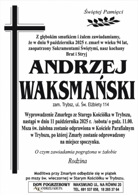 Podhale24.pl zastrzega sobie prawo do nie publikowania wspomnień, w szczególności tych nie związanych z profilem działu nekrologi, zawierających wulgaryzmy, wzywających do zachowań niezgodnych z prawem, obrażających osoby publiczne i prywatne, obrażających inne narodowości, rasy, religie itd, oraz te, bez możliwości telefonicznej lub mailowej weryfikacji ich autora.