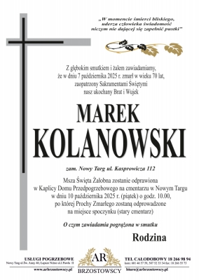 Podhale24.pl zastrzega sobie prawo do nie publikowania wspomnień, w szczególności tych nie związanych z profilem działu nekrologi, zawierających wulgaryzmy, wzywających do zachowań niezgodnych z prawem, obrażających osoby publiczne i prywatne, obrażających inne narodowości, rasy, religie itd, oraz te, bez możliwości telefonicznej lub mailowej weryfikacji ich autora.