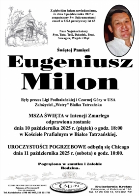 Podhale24.pl zastrzega sobie prawo do nie publikowania wspomnień, w szczególności tych nie związanych z profilem działu nekrologi, zawierających wulgaryzmy, wzywających do zachowań niezgodnych z prawem, obrażających osoby publiczne i prywatne, obrażających inne narodowości, rasy, religie itd, oraz te, bez możliwości telefonicznej lub mailowej weryfikacji ich autora.