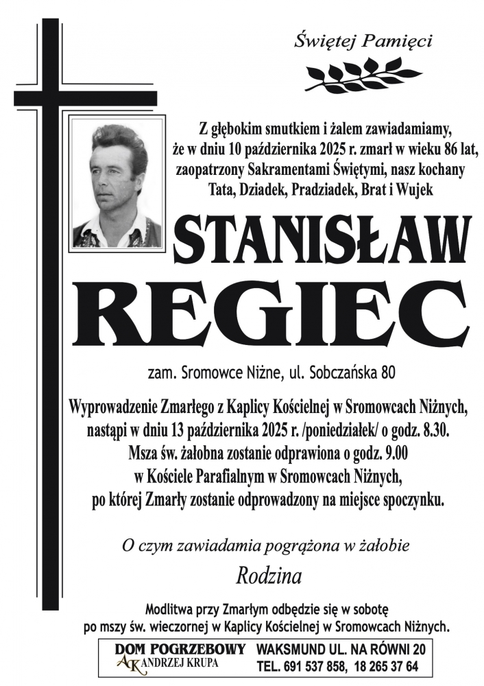 Stanisław Regiec - Nekrologi - podhale24.pl