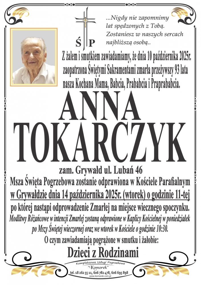 Anna Tokarczyk - Nekrologi - podhale24.pl