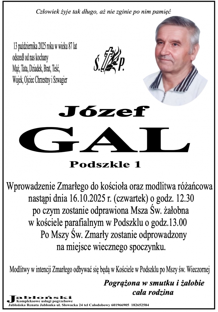 Józef Gal - Nekrologi - podhale24.pl
