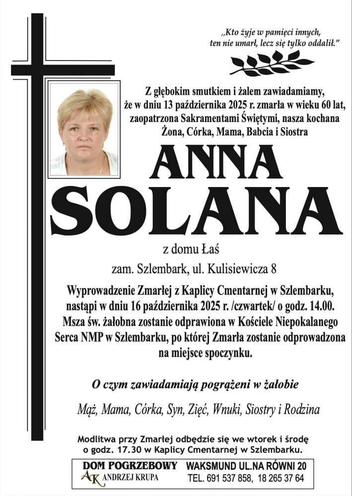 Podhale24.pl zastrzega sobie prawo do nie publikowania wspomnień, w szczególności tych nie związanych z profilem działu nekrologi, zawierających wulgaryzmy, wzywających do zachowań niezgodnych z prawem, obrażających osoby publiczne i prywatne, obrażających inne narodowości, rasy, religie itd, oraz te, bez możliwości telefonicznej lub mailowej weryfikacji ich autora.