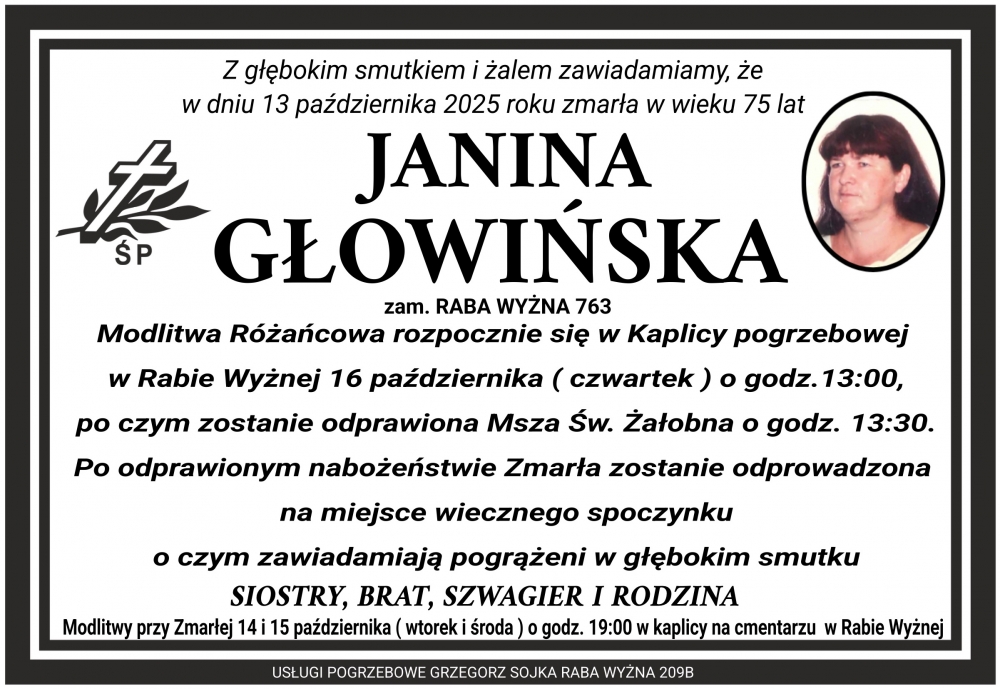 Podhale24.pl zastrzega sobie prawo do nie publikowania wspomnień, w szczególności tych nie związanych z profilem działu nekrologi, zawierających wulgaryzmy, wzywających do zachowań niezgodnych z prawem, obrażających osoby publiczne i prywatne, obrażających inne narodowości, rasy, religie itd, oraz te, bez możliwości telefonicznej lub mailowej weryfikacji ich autora.