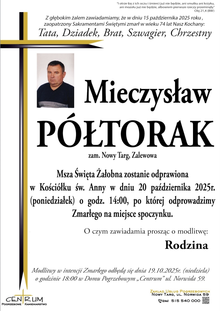 Mieczysław Półtorak - Nekrologi - podhale24.pl