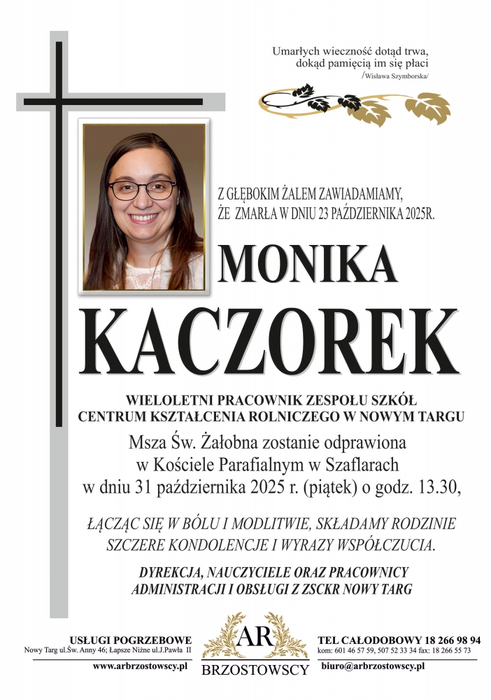 Monika Kaczorek - Nekrologi - podhale24.pl