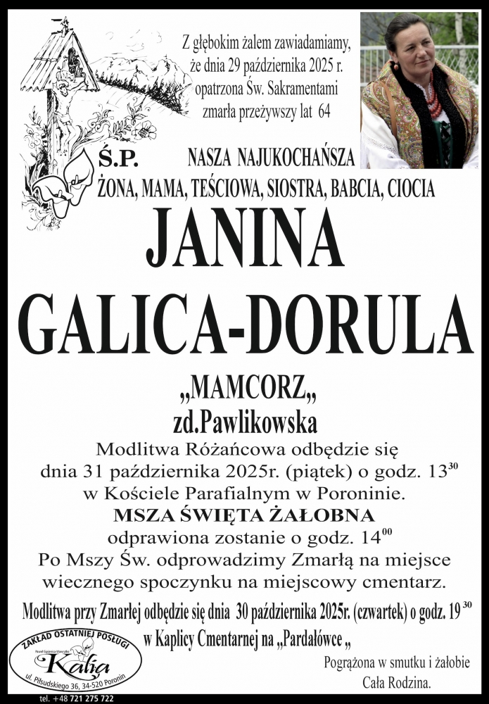Janina Galica-Dorula - Nekrologi - podhale24.pl