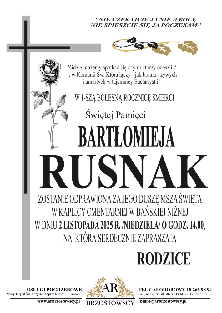 Bartłomiej Rusnak - Nekrologi - podhale24.pl