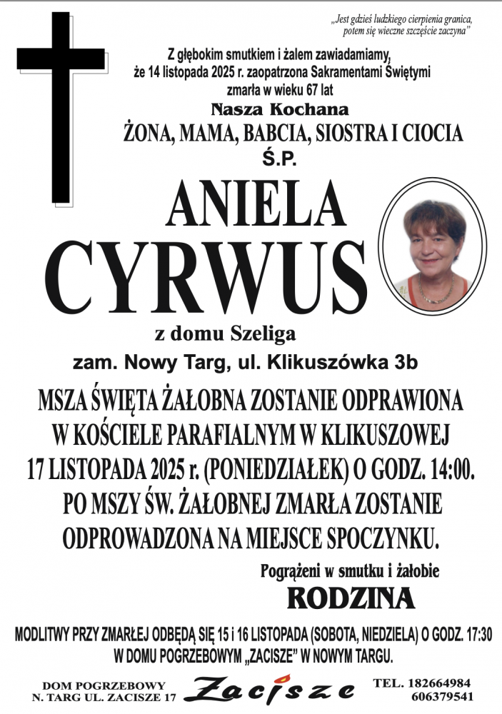 Aniela Cyrwus - Nekrologi - podhale24.pl