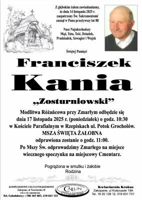 Podhale24.pl zastrzega sobie prawo do nie publikowania wspomnień, w szczególności tych nie związanych z profilem działu nekrologi, zawierających wulgaryzmy, wzywających do zachowań niezgodnych z prawem, obrażających osoby publiczne i prywatne, obrażających inne narodowości, rasy, religie itd, oraz te, bez możliwości telefonicznej lub mailowej weryfikacji ich autora.